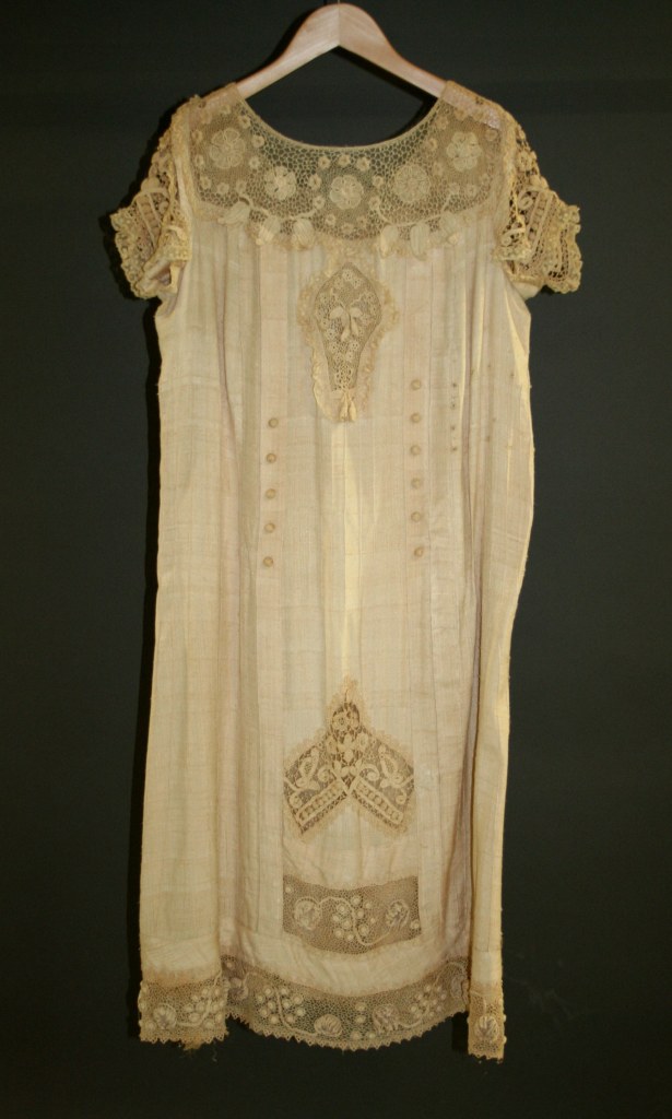 1920, Sommerkleid aus Wildseide – Upcycling; Halsausschnitt, Saum, Ärmel und Einsätze aus irischer Spitze; © Wien Museum