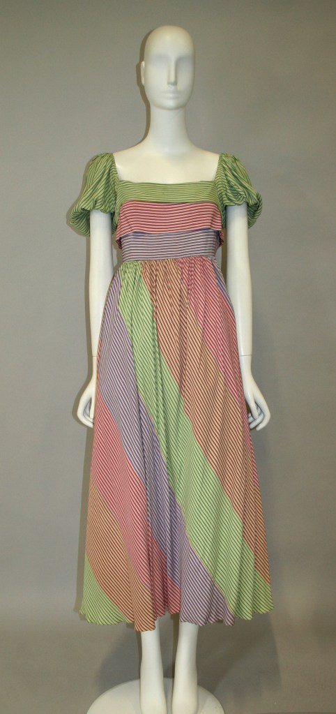 1940, Abendkleid aus buntgestreifter Viskose; Upcycling; © Wien Museum