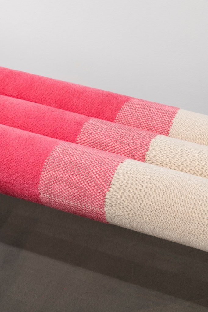 Bezeichnend für das Industrie- und Büromöbeldesign sei auch, dass es männlich dominiert ist und das könne sie auch an der Ästhetik von Büromöbeln ablesen. Sie selbst würde die Büros anders gestalten. Dabei geht es ihr neben der Ästhetik auch um Nachhaltigkeit und Effizienz: „Möbelhersteller kaufen gewebte Stoffe, schneiden sie zu und überziehen das Möbel damit.“ Wenn man die Teile strickt, kann man sie gleich in der gewünschten Form anfertigen. Dadurch fällt der Zuschnitt weg und es entsteht kein Abfall.