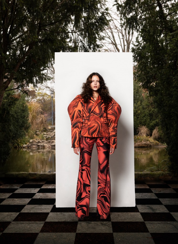 Narratives Modedesign – die Modedesignerin Jennifer Milleder erzählt gern Geschichten und kreiert Charaktere. Zu ihrer aktuellen Kollektion Rabbits n‘ Roses (2023/24) inspirierten sie etwa der White Rabbit und die Queen of Hearts aus dem Roman Alice in Wonderland. Sie gibt den Charakteren etwas Greifbares, Zeitgenössisches und auch Starkes. Das macht sie unter anderem mit Schnittkonstruktionen. Ikonisch – ihre voluminösen Schultern und Ärmel. Ein Portrait, der aufstrebenden Modedesignerin:
